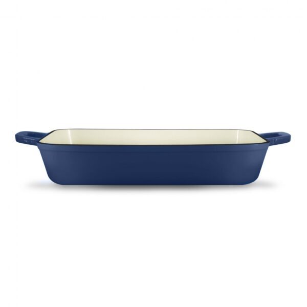Grand Feu rectangular blue baking dish is perfect for cooking both sweet and non-sweet dishes with a crispy crust.