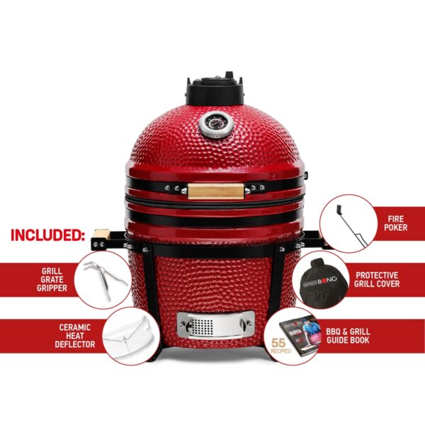 Kamado Bono is a 3-in-1 outdoor grill, oven and smoker. A compact and easy-to-use grill, perfect for smaller patios, outdoor picnics or travelling. For a natural person, all ceramic parts come with an unlimited warranty.