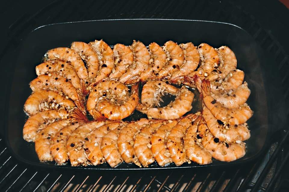 Arrange the prawns neatly in the pan. - Cook indirectly at 200°C for 12–15 minutes. Do not turn the prawns during cooking.